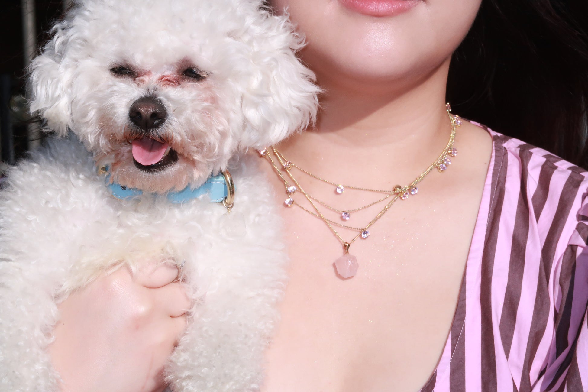 Each collar and necklace is adorned with raw, hand-carved crystals—never duplicated. Every stone holds its own natural texture and energy, making each piece as unique as the bond you share with your pet.